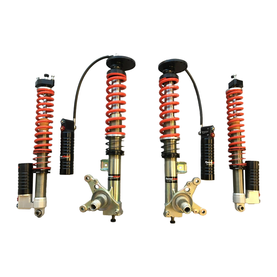 Opción con copelas duraluminio 7075 con rótula de competición, ajustables en caídas y avances.